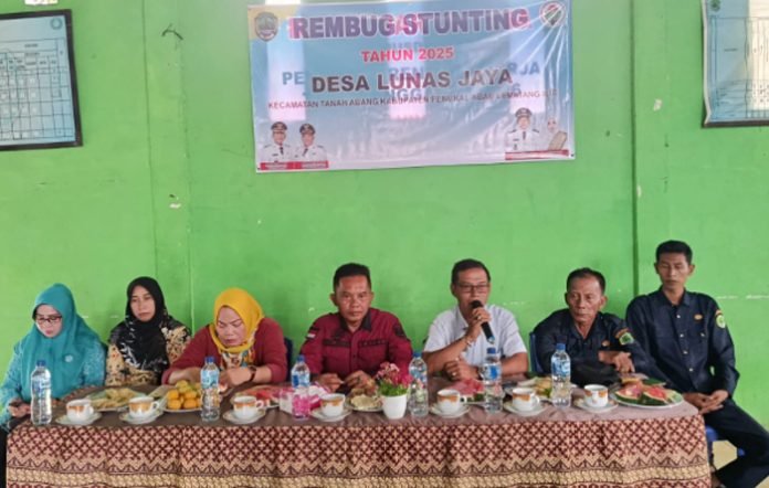 PENUKAL ABAB LEMATANG ILIR, BERITAANDA – Pemerintah Desa (Pemdes) Lunas Jaya, Kecamatan Tanah Abang, Kabupaten Penukal Abab Lematang Ilir (PALI) menggelar dua agenda penting sekaligus, yakni rembuk stunting tahun 2025 dan musyawarah perencanaan desa (musrenbangdes) tahun anggaran 2026 yang berlangsung di Kantor Kepala Desa Lunas Jaya, Rabu (13/8/2025).