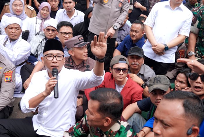 Suasana yang semula dipenuhi lantunan orasi berubah menjadi ruang dialog terbuka ketika para pemimpin daerah turun langsung menemui massa.