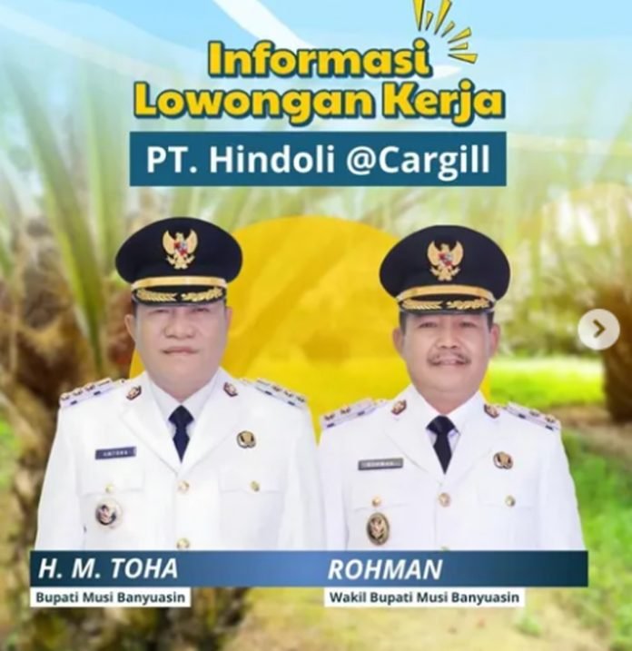 MUSI BANYUASIN, BERITAANDA – Dalam rangka meningkatkan kesempatan kerja bagi masyarakat lokal serta mengimplementasikan Peraturan Daerah (Perda) No. 2 Tahun 2020 tentang ketenagakerjaan, Pemerintah Kabupaten Musi Banyuasin (Muba) melalui Dinas Tenaga Kerja dan Transmigrasi (Disnakertrans) berkolaborasi dengan PT Hindoli membuka lowongan kerja bagi warga Muba. Program ini juga merupakan tindak lanjut dari visi Bupati Muba HM Toha Tohet dan Kyai Rohman melalui program Muba Maju Lebih Cepat.