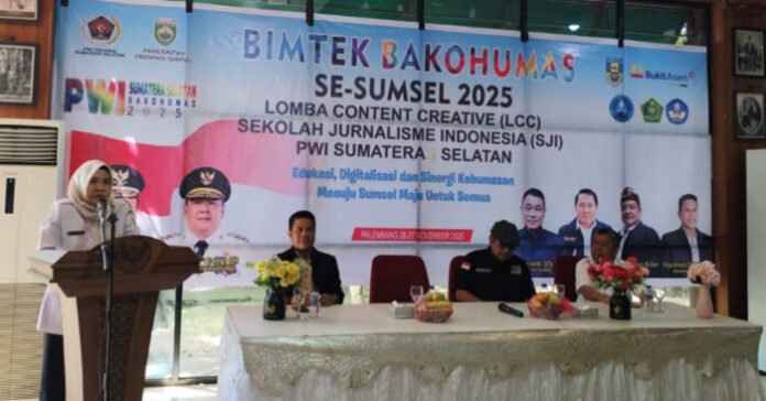 PALEMBANG, BERITAANDA – Bimbingan Teknis Badan Koordinasi Humas (Bimtek Bakohumas) dan Lomba Content Creative (LCC) 2025 yang digelar Persatuan Wartawan Indonesia Sumatera Selatan (PWI Sumsel) berlangsung sukses dan penuh antusiasme. Kegiatan ini digelar di VIP Room Kedai Tiga Nyonya, kawasan Kambang Iwak, Palembang, Rabu (26/11/2025).
