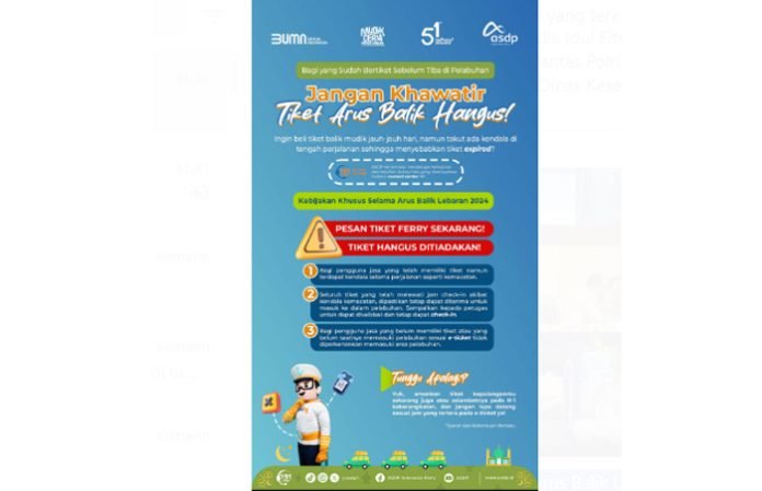 Bagi pengguna jasa penyeberangan yang telah memiliki tiket namun terhambat kemacetan selama perjalanan diantaranya memberlakukan kebijakan ‘tiket hangus ditiadakan’.