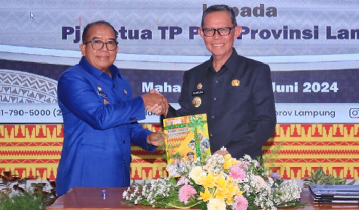 “ini bukanlah pekerjaan yang mudah. Tapi saya yakin dan percaya bahwa dengan kebersamaan dan dukungan saudara-saudara dari seluruh institusi serta elemen masyarakat yang ada di Provinsi Lampung, maka program-program pembangunan daerah yang telah tersusun dalam rencana kerja Pemerintah Provinsi Lampung sebelumnya akan dapat terlaksana dengan baik,” demikian disampaikan oleh Pj. Gubernur Lampung Samsudin saat menghadiri kegiatan serah terima jabatan Plh. Gubernur Lampung Fahrizal Darminto kepada Pj. Gubernur Lampung Samsudin serta Plh. Ketua TP PKK Provinsi Lampung Mamiyani Fahrizal kepada Pj. Ketua TP PKK Provinsi Lampung Maidawati Retnoningsih, di Mahan Agung, Rumah Dinas Jabatan Gubernur Lampung, Kamis (20/6/2024).