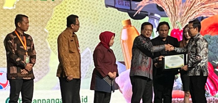 Penghargaan Rapid Response Pasar Pangan Aman Segar diserahkan langsung oleh Kepala Badan Pangan Nasional Arif Prasetyo Adi ST MT kepada Kepala Dinas KPTPH Provinsi Lampung, Ir. Bani Ispriyanto, M.M.