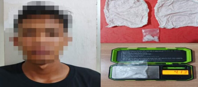 Tersangka ditangkap pada 18 April 2026 sekitar pukul 19.20 WIB, setelah polisi menerima informasi dari masyarakat terkait adanya aktivitas transaksi narkotika di wilayah tersebut.