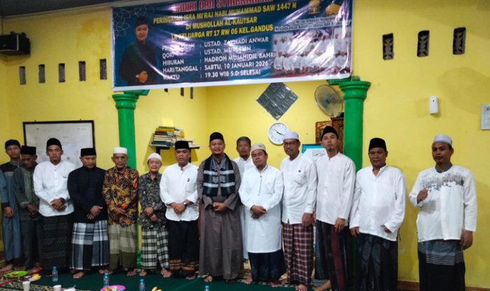 PALEMBANG, BERITAANDA – Pengurus Mushollah Al Kautsar Lorong Keluarga RT 17 RW 05, Kelurahan Gandus, Kecamatan Gandus, Kota Palembang menyelenggarakan peringatan Isra Mi’raj Nabi Muhammad Shallallahu Alaihi Wasallam tahun 2026 dengan mengusung tema ‘Isra Mi’raj sebagai Momentum Meningkatkan Kualitas Shalat dan Keimanan’. Kegiatan ini berlangsung khidmat, tertib, dan penuh kekhusyukan pada Sabtu (10/1/2026) malam.
