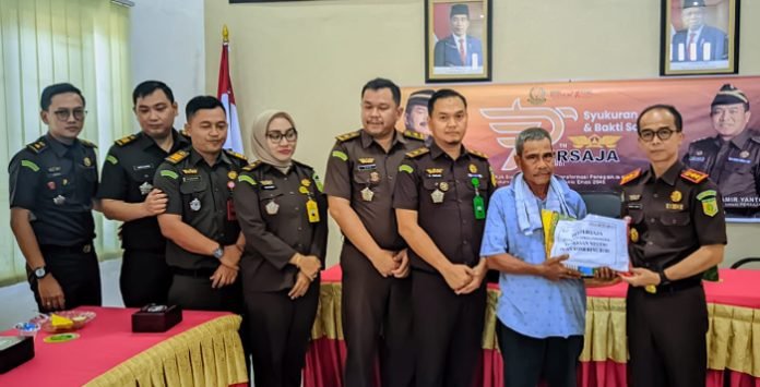 Lalu, digelar pula bakti sosial serta tali kasih pembagian sembako dan uang tunai dari Kejari OKI kepada perwakilan paguyuban pengemudi becak yang ada di Kecamatan Kayuagung. (Iwan)