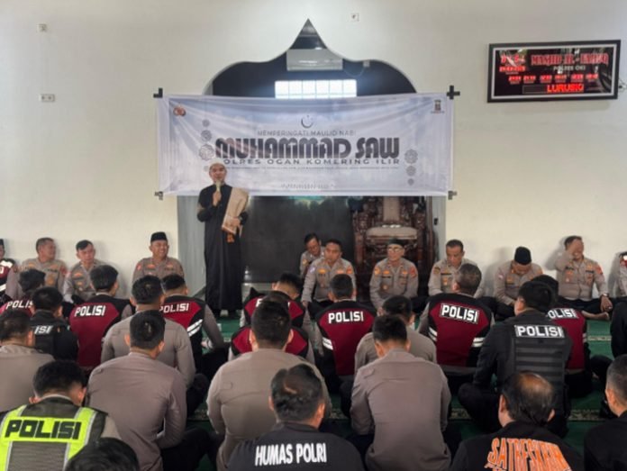 OGAN KOMERING ILIR, BERITAANDA – Kepolisian Resor Ogan Komering Ilir (Polres OKI) menggelar peringatan Maulid Nabi Muhammad Shallallahu Alaihi Wasallam 1447 Hijriah di Masjid Al-Faruq, Kamis (4/9/2025).