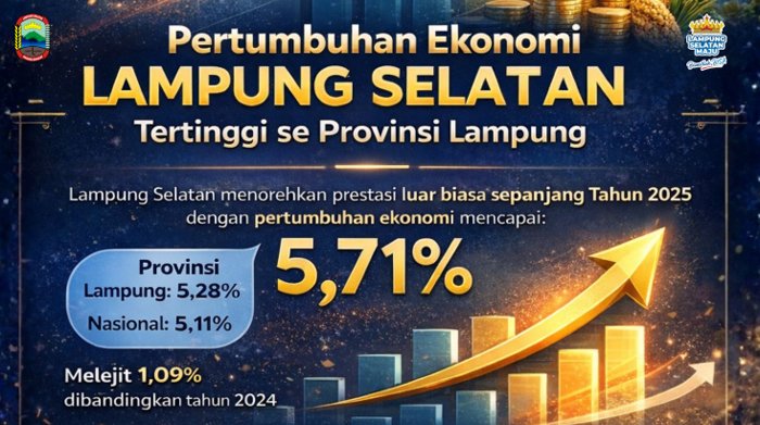 Capaian tersebut menempatkan Kabupaten Lampung Selatan sebagai daerah dengan pertumbuhan ekonomi tertinggi di Provinsi Lampung. Angka ini melampaui rata-rata pertumbuhan ekonomi provinsi yang tercatat sebesar 5,28 persen, sekaligus melampaui pertumbuhan ekonomi nasional sebesar 5,11 persen.