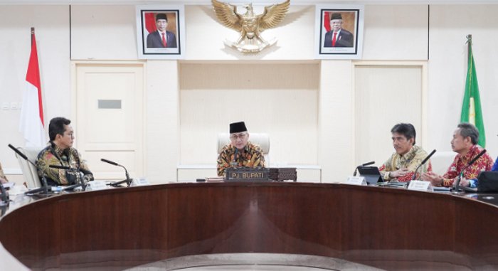 MUSI BANYUASIN, BERITAANDA – Penjabat (Pj) Bupati Kabupaten Muba H. Apriyadi Mahmud menerima Kepala Badan Pengawasan Keuangan dan Pembangunan (BPKP) Perwakilan Provinsi Sumatera Selatan, dalam rangka membahas implementasi sistem pengendalian intern pemerintah untuk peningkatan tata kelola Pemerintahan Kabupaten Musi Banyuasin, bertempat di Ruang Rapat Serasan Sekate, Kamis (4/4/2024).