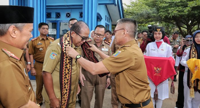 Di SMAN 1 Terbanggi Besar, Samsudin disambut oleh rombongan guru serta jajaran kepala sekolah di Kabupaten Lampung Tengah.