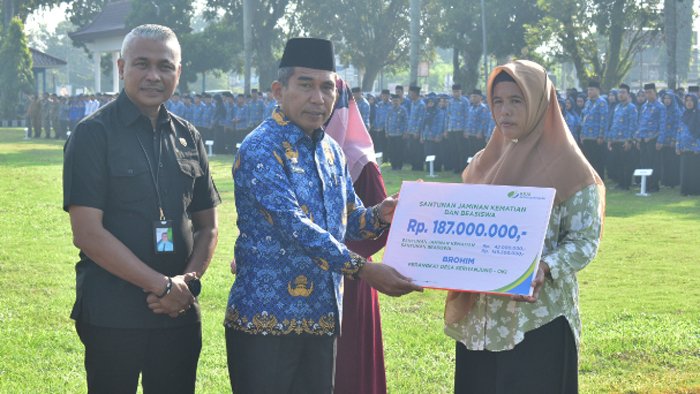 Adapun rincian satuan jaminan kematian terhadap kepada ahli waris Sulaiman (non ASN Dinas PUPR Kabupaten OKI) menerima santunan kematian sebesar Rp 42.000.000, Brohim (perangkat Desa Seritanjung OKI) menerima santunan kematian sebesar Rp 42.000.000 dan beasiswa untuk 2 orang anak dengan total Rp 145.000.000, sehingga total santunan yang diterima adalah Rp 187.000.000. (Iwan)