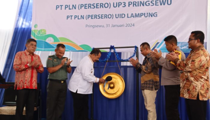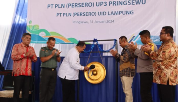 Peresmian ditandai dengan pemukulan gong oleh General Manager PLN Unit Induk Distribusi (UID) Lampung bersama Forkopimda Kabupaten Pringsewu, Rabu (31/1/2024).