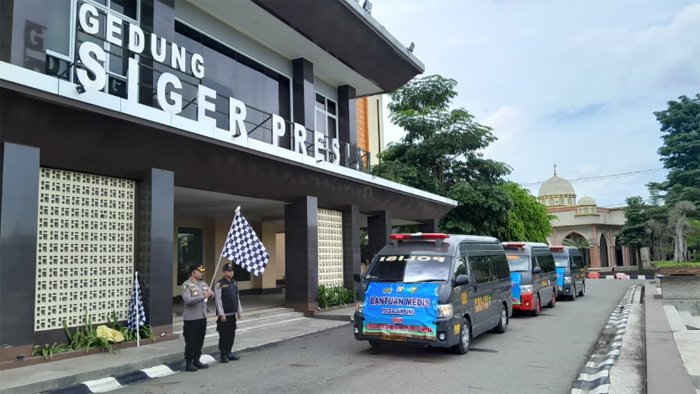 Rombongan diberangkatkan menuju wilayah hukum Polda Sumatera Barat dalam kondisi aman dengan membawa perlengkapan medis guna menunjang pelayanan kesehatan darurat di lapangan.