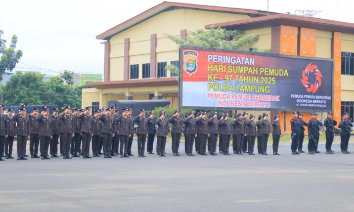 BANDAR LAMPUNG, BERITAANDA – Polda Lampung menggelar upacara peringatan Hari Sumpah Pemuda ke-97 Tahun 2025 dengan penuh khidmat, Selasa (28/10/2025).