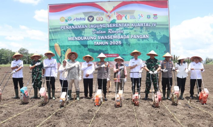 OGAN KOMERING ILIR, BERITAANDA – Polda Sumatera Selatan (Sumsel) terus menunjukkan komitmennya dalam mendukung penguatan ketahanan pangan nasional. Hal ini diwujudkan melalui kegiatan penanaman jagung serentak kuartal IV yang digelar di Kabupaten Ogan Komering Ilir (OKI), Rabu (8/10/2025).