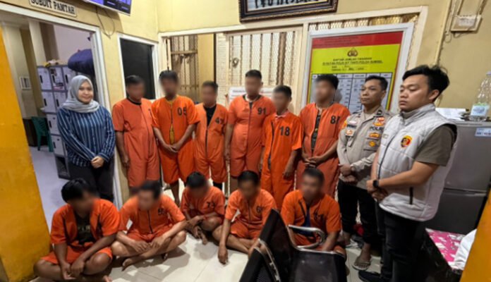 “Berdasarkan hasil gelar perkara, 11 orang telah kami tetapkan sebagai tersangka karena terbukti terlibat langsung dalam praktik penyalahgunaan BBM subsidi. Sementara satu orang lainnya tidak memenuhi unsur pidana dan dipulangkan karena hanya berstatus sebagai saksi,” ujar Kombes Pol Doni.