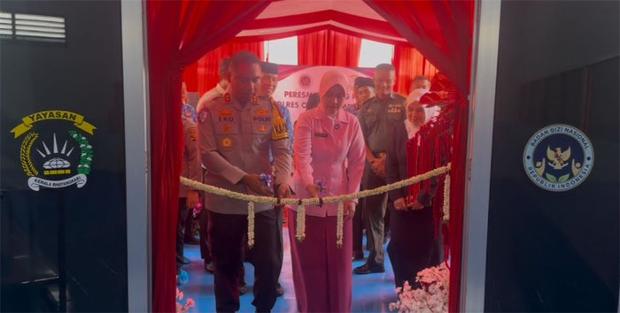 Acara dilanjutkan dengan pemotongan pita sebagai tanda peresmian serta peninjauan langsung ke fasilitas SPPG. Kehadiran SPPG ini diharapkan dapat memperkuat peran Polri dalam mendukung pembangunan sumber daya manusia, khususnya di bidang kesehatan dan pemenuhan gizi generasi penerus bangsa. (Iwan)