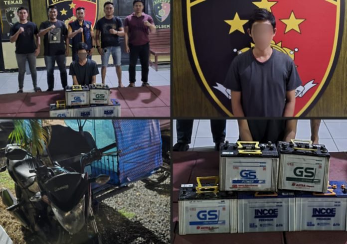 Barang bukti yang diamankan antara lain dua kunci pas, satu senter tangan, satu jaket hitam merek Adidas, lima aki mobil, serta satu unit becak motor (bentor) yang digunakan pelaku untuk mengangkut hasil curian.