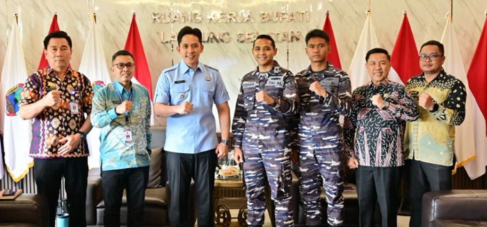 LAMPUNG SELATAN, BERITAANDA – Bupati Lampung Selatan, Radityo Egi Pratama, menerima audiensi jajaran Pusat Hidrografi dan Oseanografi TNI Angkatan Laut (Pushidrosal) di ruang kerjanya, Kamis (20/11/2025). Pertemuan tersebut membahas pelaksanaan Operasi Survei dan Pemetaan Laut di wilayah perairan Teluk Lampung.
