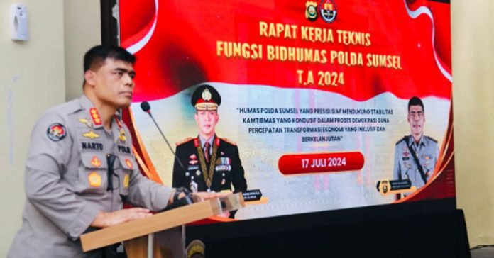 PALEMBANG, BERITAANDA – Menindaklanjuti hasil rapat kerja teknis (rakernis) Humas Polri tahun 2024 di Surabaya beberapa waktu lalu, Bidang Humas Polda Sumsel menggelar rakernis bagi jajaran, Rabu (17/7/2024).
