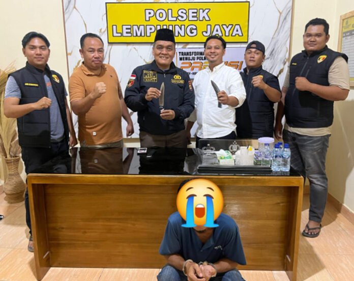Hasilnya pada kegiatan patroli hunting tersebut, Tim Opsnal Unit Reskrim Polsek Lempuing Jaya berhasil mengamankan Mahat (31), seorang pria yang tertangkap tangan kedapatan membawa dua bilah senjata tajam jenis pisau.