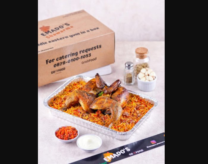 Di cabang ini, pelanggan dapat menikmati menu andalan Emado’s, yakni roasted chicken yang menjadi best seller. Hidangan ini disajikan dengan tiga pilihan nasi khas Timur Tengah, yaitu nasi mandhi, nasi kabsah, dan nasi biryani, yang dikenal memiliki cita rasa gurih dan kaya rempah.