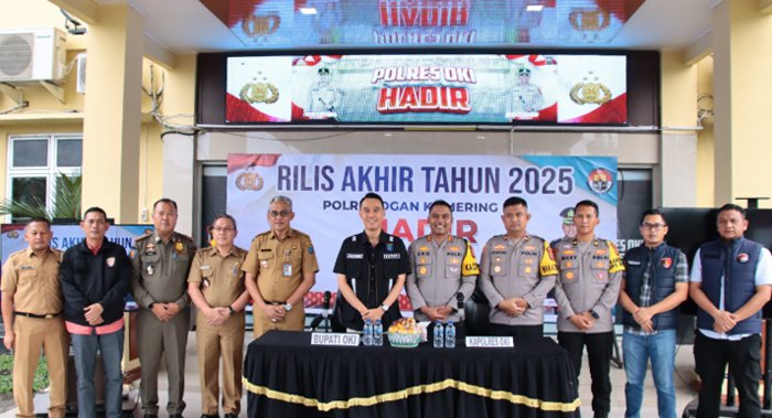Rilis akhir tahun tersebut disampaikan langsung oleh Kapolres OKI AKBP Eko Rubiyanto SH SIK MH, yang didampingi Bupati OKI Muchendi Mahzareki SE M.Si, Selasa (30/12/2025).