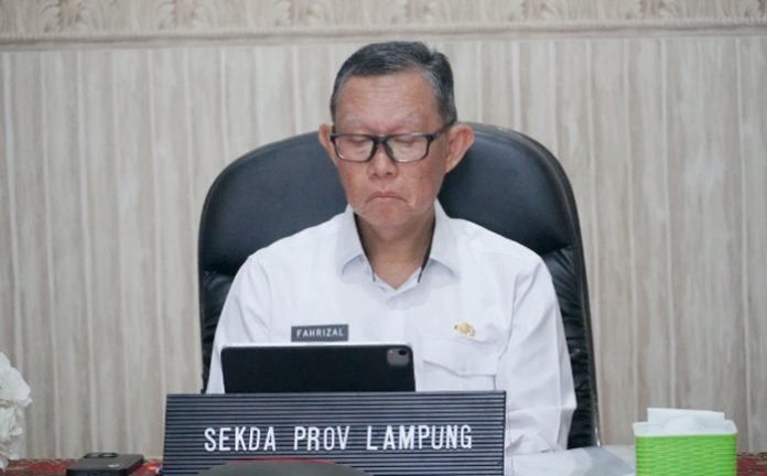 BANDAR LAMPUNG, BERITAANDA – Sekretaris Daerah Provinsi Lampung Fahrizal Darminto mengikuti rapat koordinasi (rakor) pengendalian inflasi daerah secara virtual yang dipimpin oleh Inspektur Jenderal Kementerian Dalam Negeri, Tomsi Tohir, di Ruang Command Center lt.II Dinas Kominfotik Provinsi Lampung, Rabu (13/3/2024).