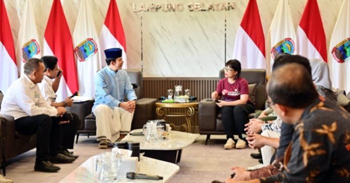 Usai meninjau lokasi, Stella Christie melakukan audiensi dengan Bupati Lampung Selatan, Radityo Egi Pratama, di ruang kerja bupati.