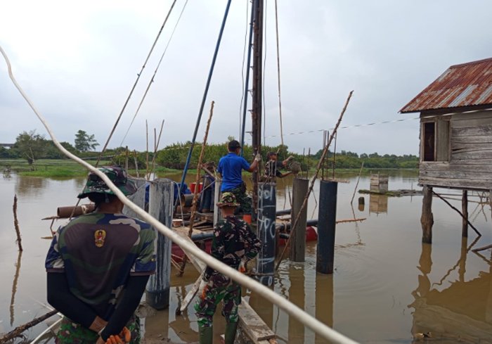 Semangat Tanpa Lelah di Bulan Ramadan, Kodim 0402/OKI-OI Percepat Pembangunan Jembatan Gantung Desa Embacang