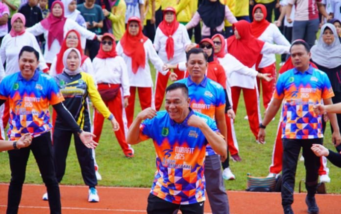 MUSI BANYUASIN, BERITAANDA – Suasana penuh semangat terlihat di Lapangan Stadion Serasan Sekate Sekayu saat ribuan peserta mengikuti senam massal dalam rangka memperingati Hari Olahraga Nasional (Haornas) ke-42, Selasa (9/9/2025).