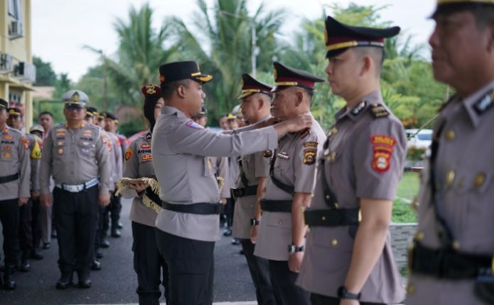 OGAN KOMERING ILIR, BERITAANDA – Polres Ogan Komering Ilir (OKI) melaksanakan upacara pelantikan dan serah terima jabatan (sertijab) pejabat utama di lobi depan Mapolres OKI, Jumat (22/8/2025).