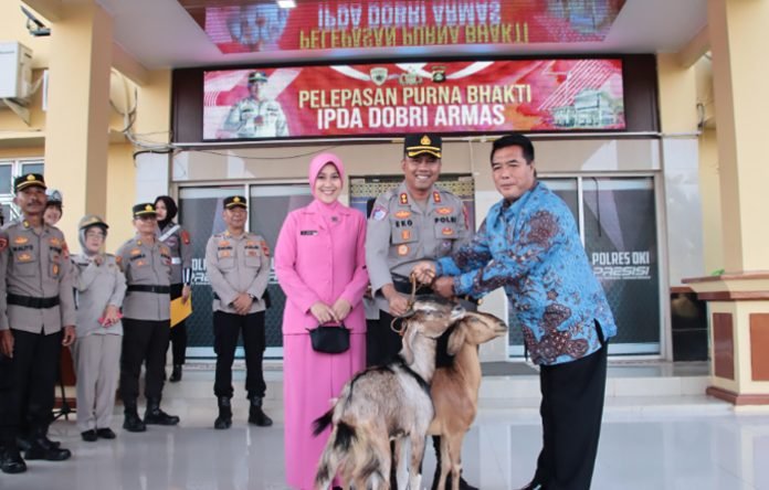 Sebagai bentuk apresiasi, Kapolres OKI menyerahkan sepasang kambing kepada Ipda Dobri. Hadiah ini diberikan sebagai simbol penghormatan dan tali asih dari kesatuan atas loyalitas dan pengabdian yang telah diberikan.