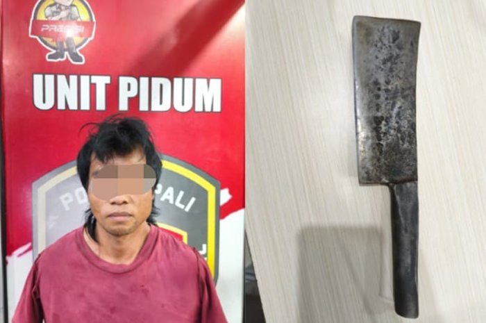 Tersangka ditangkap tanpa perlawanan dan langsung dibawa ke Mapolres PALI bersama barang bukti sebilah pisau daging berukuran sekitar 30 Cm.