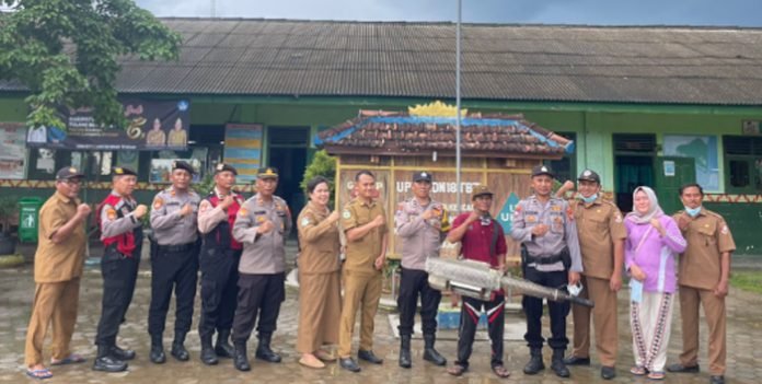 TULANG BAWANG BARAT, BERITAANDA – Sat Samapta Polres Tulang Bawang Barat (Tubaba) melakukan fogging di SDN 18 Tulang Bawang Tengah, Senin (29/4/2024).