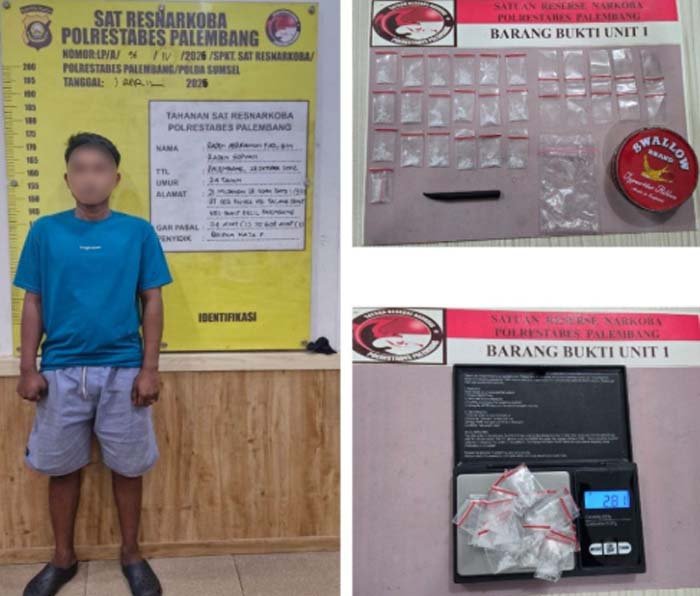 PALEMBANG, BERITAANDA – Unit 1 Satuan Reserse Narkoba Polrestabes Palembang berhasil mengungkap kasus peredaran narkotika jenis sabu melalui operasi penyamaran (undercover buy) di Jalan Mujahidin, Lorong Soak Bato, Kelurahan Talang Semut, Kecamatan Bukit Kecil, Kota Palembang, Senin (30/3/2026) sekitar pukul 18.30 WIB.