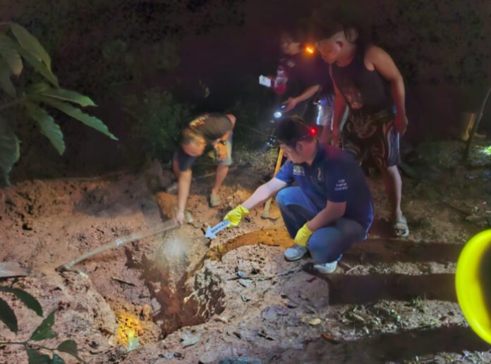 Selanjutnya, keluarga bersama warga dan perangkat desa melakukan pengecekan pada Rabu dini hari sekitar pukul 00.15 WIB. Di lokasi tersebut ditemukan tiga karung plastik yang ditanam di dalam lubang sedalam sekitar 1,5 meter.