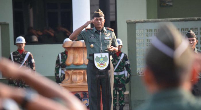 BANDAR LAMPUNG, BERITAANDA – Komandan Korem 043/Gatam Brigjen TNI Iwan Ma’ruf Zainudin SE bertindak selaku inspektur upacara pada upacara bulanan yang dilaksanakan di lapangan upacara Makorem 043/Gatam, Rabu (17/4/2024).