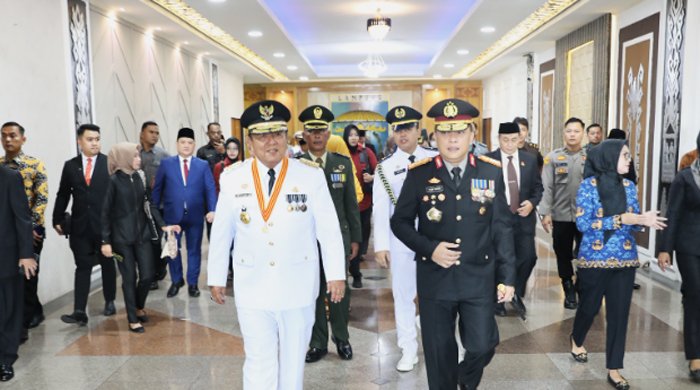 BANDAR LAMPUNG, BERITAANDA – Gubernur Lampung Arinal Djunaidi menjadi inspektur upacara peringatan hari jadi ke- 60 Provinsi Lampung di Lapangan Korpri, Kantor Pemerintah Provinsi Lampung, Selasa (19/3/2024).