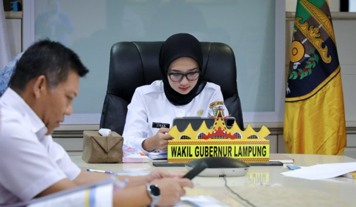 BANDAR LAMPUNG, BERITAANDA – Wakil Gubernur Lampung, Jihan Nurlela, mengikuti peluncuran Indikator Indeks Pencegahan Korupsi Daerah (IPKD) Monitoring Center for Prevention (MCP) 2025 secara virtual dari ruang kerjanya di Bandar Lampung, Rabu (5/3/2025).