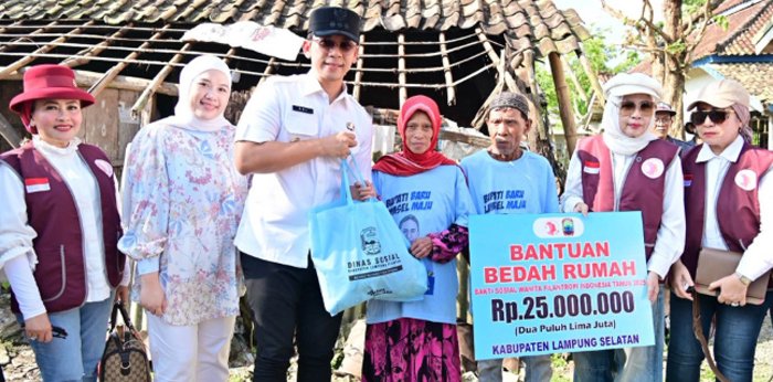 LAMPUNG SELATAN, BERITAANDA – Kepedulian sosial kembali menggema di Kabupaten Lampung Selatan. Wanita Filantropi Indonesia (WFI) menggelar kegiatan bedah rumah layak huni bagi warga di Desa Negeri Pandan, Kecamatan Kalianda, serta Desa Sidomulyo, Kecamatan Sidomulyo, Rabu (15/10/2025).