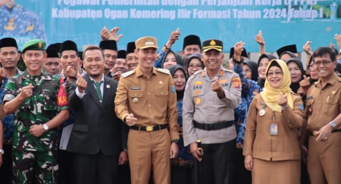 OGAN KOMERING ILIR, BERITAANDA – Kapolres Ogan Komering Ilir (OKI) AKBP Eko Rubiyanto SH SIK MH menghadiri upacara pelantikan dan pengambilan sumpah Pegawai Pemerintah dengan Perjanjian Kerja (PPPK) Kabupaten OKI yang digelar di lapangan pemda setempat, Selasa (20/5/2025).