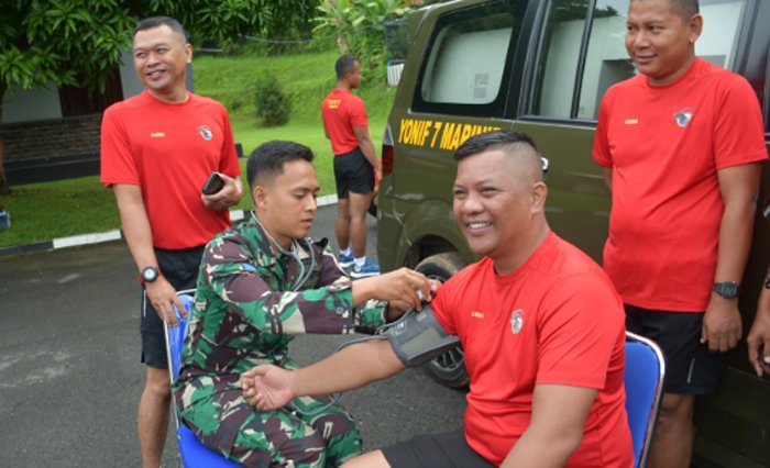 Pembinaan fisik diawali dengan apel pagi, kemudian dilanjutkan dengan pemeriksaan kesehatan bagi prajurit yang akan mengikuti latihan lari ketahanan selama 20 menit.