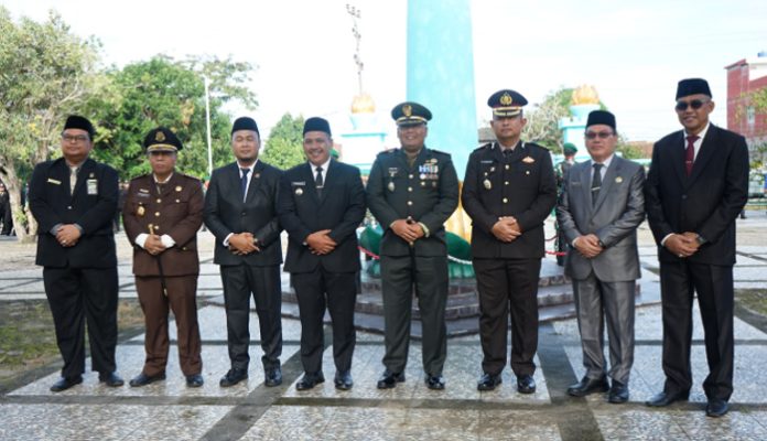 Hadir dalam upacara tersebut jajaran Forum Koordinasi Pimpinan Daerah (Forkopimda) Kabupaten OKI, unsur TNI-Polri, ASN Kodim 0402/OKI-OI, serta Ketua Persit KCK Cab XXXVII Dim 0402/OKI Ny. Nurul Yontri Bhakti, bersama anggota.