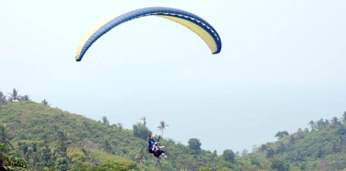 “Pemandangannya indah sekali dari atas, luar biasa, dengan suguhan panorama sampai ke ujung Pulau Sumatera. Terima kasih kepada komunitas paralayang yang sudah mendampingi,” ujar Zita usai mendarat dengan selamat.